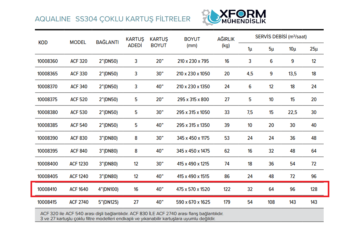 AQUALINE ACF 1640 SS304 Çoklu Kartuş Filtre