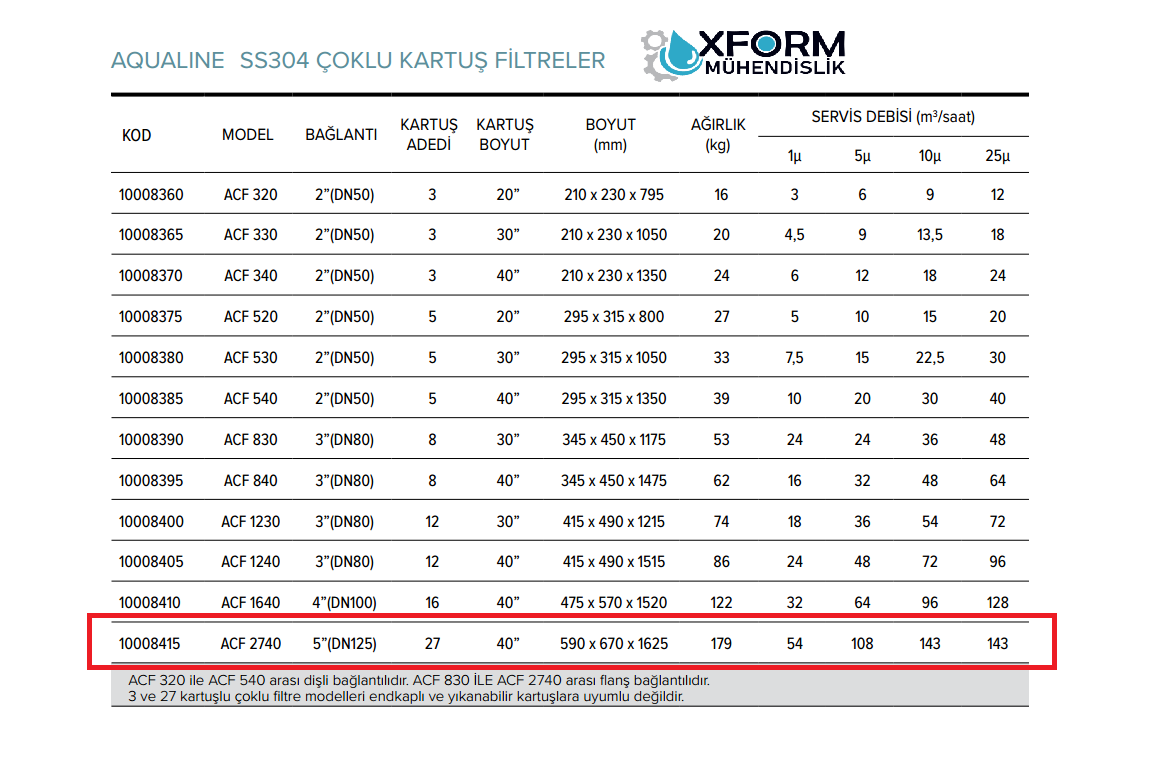 AQUALINE ACF 2740 SS304 Çoklu Kartuş Filtre