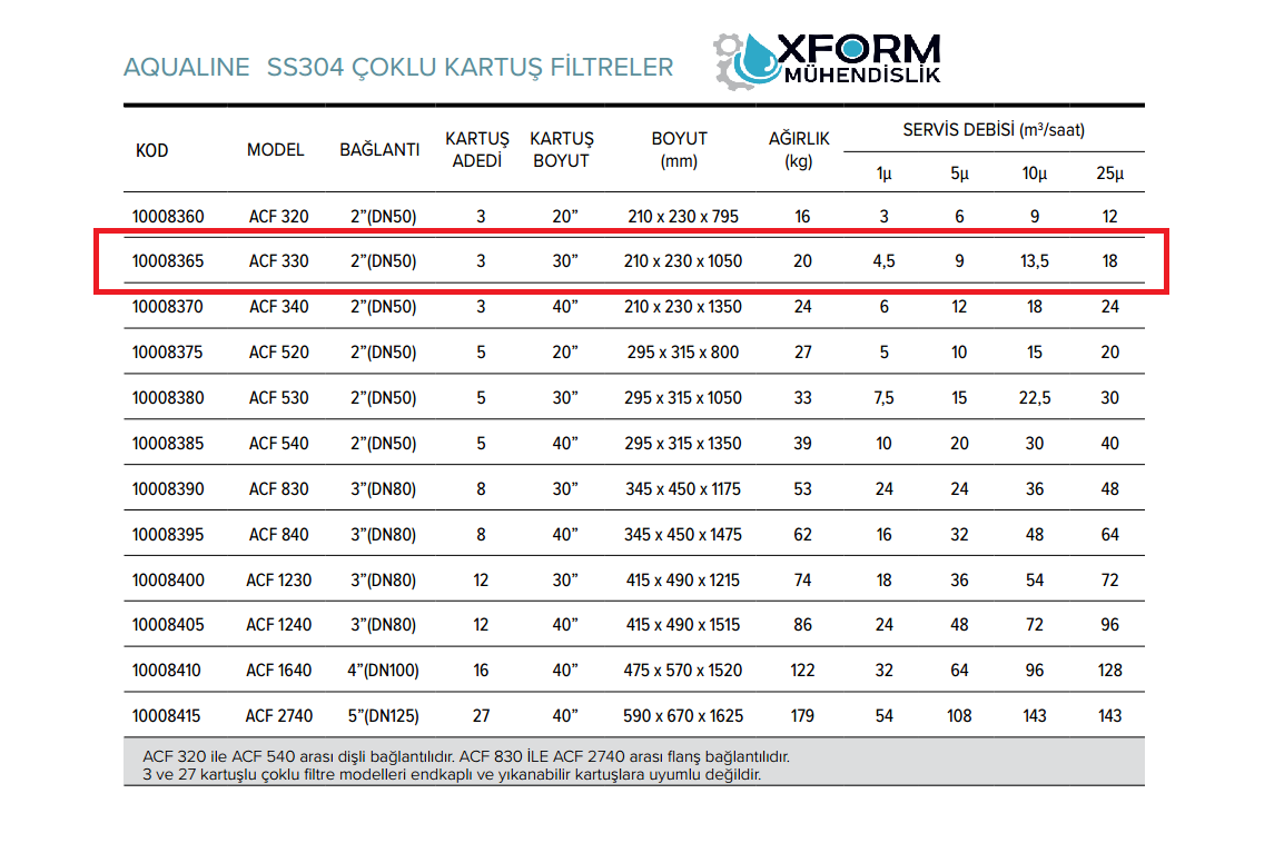 AQUALINE ACF 330 SS304 Çoklu Kartuş Filtre