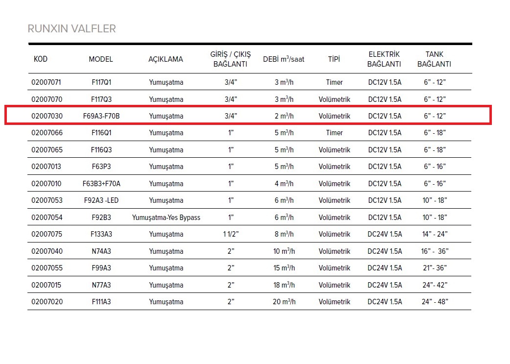 Runxin F69A3 – F70B Yumuşatma Valfi