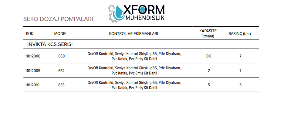 SEKO Invikta KCS 633 Dozaj Pompası